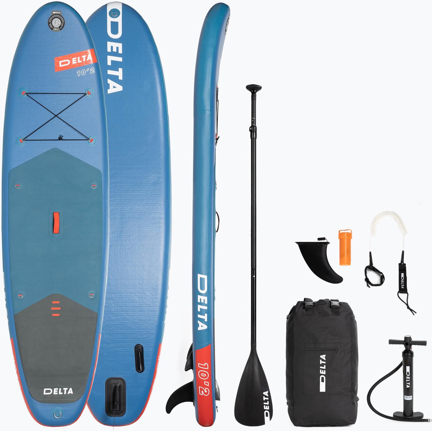 Pompowany paddleboard DELTA 10'2 Allround w klasycznym kształcie. Delta 10'2 to uniwersalna pompowana deska SUP do wszechstronnych zastosowań. To idealny model zarówno dla początkujących jak i nieco bardziej zaawansowanych użytkowników. Deska o rozmiarze 10’2” sprawdzi się w najróżniejszych warunkach. Polecana jest na spokojniejsze wody i jeziora – idealny zestaw dla początkujących . Wymiary deski SUP: długość: 310 cm, szerokość: 81 cm i wysokość: 15 cm. Pojemność deski wynosi 305 litrów. Maksymalna waga pojedynczego użytkownika: 130 kg. Waga samej deski: 13 kg Deska Delta 10'2 to wszechstronna i bardzo uniwersalna deska idealna do rekreacyjnego użytku. Dzięki swojej klasycznej konstrukcji świetnie sprawdzi się jako pierwszy SUP w rodzinie. Na dziobie znajduje się elastyczna linka Bungy, która służy do przymocowania rzeczy osobistych do deski. Deska SUP wyposażona jest jeden wyjmowany statecznik. Pokład deski czyli górna powierzchnia deski SUP pokryta jest warstwą pianki EVA, która jest bardzo przyjemna w dotyku, a jednocześnie zapewnia wystarczającą antypoślizgowość.