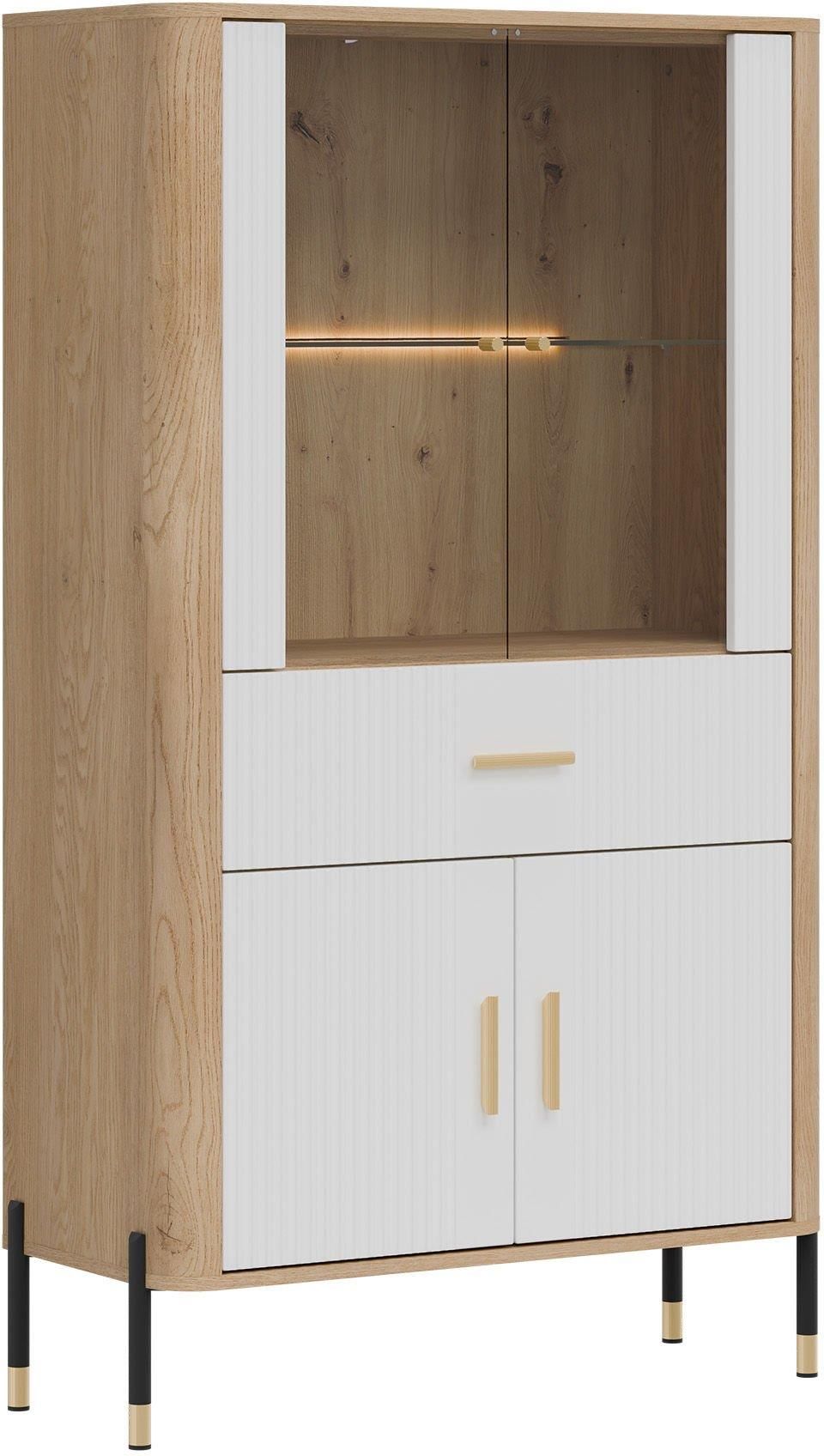 Liveo Witryna Niska Dante Dt12 4D1S Dąb Cremona Torro / Biały Mat Złoty Uchwyt 165Cm Gąbin