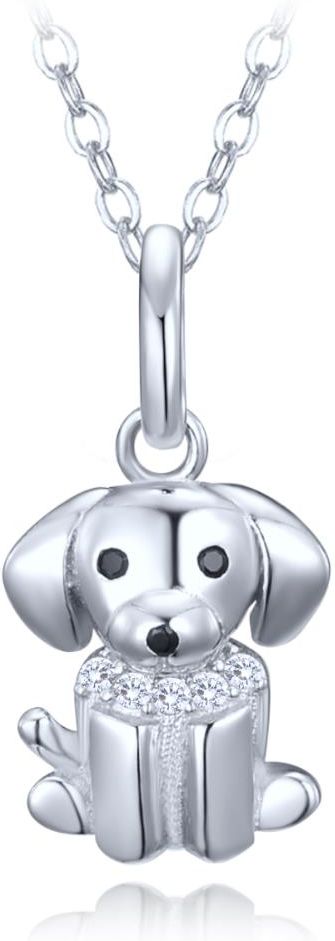Minet Srebrny naszyjnik pies z białymi i czarnymi cyrkoniami Gąbin