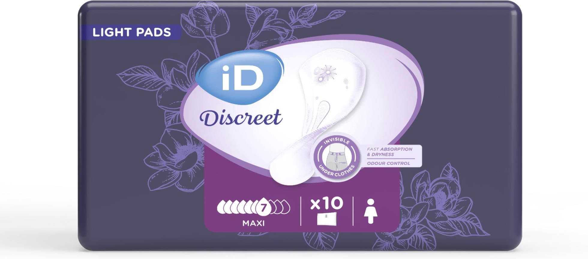 Wkładki iD Discreet Maxi to wyrób medyczny przeznaczony dla kobiet do stosowania w przypadku lekkiego i średniego nietrzymania moczu. Charakteryzuje się wysoką chłonnością oraz komfortem użytkowania.