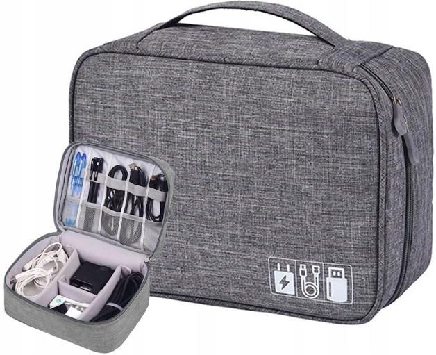 Stylowa i pojemna saszetka na akcesoria Parametry: Stan - Nowy Kolor - Szary Płeć - Unisex Grupa wiekowa - Uniwersalna Materiał - 100% poliester Zamykana na zamek błyskawiczny z dwoma suwakami Szczegóły : szerokość - 24,5 cm wysokość - 18 cm głębokość - 10 cm Pełni funkcje jako : SASZETKA, KOSMETYCZKA, ORGANIZER, ETUI, TORBA Jakość wykonania Etui zostało wykonane z trwałego poliestru. Suwak wykonany z solidnego metalu, pracuje przyjemnie gładko, nie zacina się. 3 przegrody posiadają rzepy - można je odczepiać i układać w dowolny kształt To idealnie połączenie zapewnia ochronę oraz komfort użytkowania przy zachowaniu funkcjonalności Produktu. Wiele zastosowań Dzięki uniwersalnym przegrodom Nasz Produkt posiada wiele zastosowań, np. jako : organizer na kabelki, ładowarki, dyski, power banki itd. kosmetyczka podróżna etui na maszynkę do golenia, czy przyrządy do strzyżenia saszetka idealna na malutkie elementy zabawek dla dzieci Niezbędny Element w Twojej podróży Organizer idealnie przechowa wszystkie plączące się w torebce, walizce czy samochodzie kabelki i słuchawki. Z naszym etui zagubiony w plecaku power bank czy selfiestick jest przeszłością. Wkładając wszystkie niezbędne nam akcesoria elektroniczne do organizera mamy pewność, że elementy te pozostaną na swoim miejscu i nigdy już nie trzeba będzie ich szukać. Zamykana na zamek, bardzo lekka saszetka jest świetnym rozwiązaniem podczas wszelkich wyjazdów - składana na płasko zmieści się do każdej walizki, plecaka lub w schowku samochodowym. Elegancki i ponadczasowy wygląd Torba doskonale sprawuje swoje zadanie zarówno w życiu prywatnym jak i zawodowym. Bardzo dobrze zabezpiecza niezbędne nam akcesoria przed uszkodzeniami oraz jest zaprojektowany w nowoczesnym i ponadczasowym stylu.