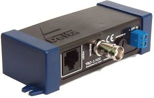Urządzenie nie jest urządzeniem autonomicznym. Musi współpracować z TRN-1/400. TRO-1/400 przeznaczony jest do przesyłu sygnału wizyjnego i zasilania za pomocą skrętki komputerowej (UTP, FTP). W nadajniku i odbiorniku następuje dopasowanie impedancji kabla koncentrycznego 75Ω do impedancji przewodu symetrycznego co zapewnia przesył wizji do 400m. Odbiornik TRO-1/400 wpuszcza do skrętki komputerowej napięcie stałe niestabilizowane (maksymalnie do 40V DC), które w nadajniku TRN-1/400 jest stabilizowane do wartości 12V DC pozwalając na zasilanie kamer z termostatem. Rodzaj urządzenia: Aktywne / Odbiornik Liczba kanałów.: 1 Wideo1 DC Napięcie wejściowe: max. 29 V AC / 1 A Napięcie wyjściowe: max. 40 V DC / 1 A Zasięg wideo: max. 400 m UTP kat. 5e Napięcie we/wy 75Ω (CVBS): 1 Vpp Tłumienie przelotowe: -0.5 dB @ 5 MHz Wideo Zakres pasma wideo: 0 ... 50 MHz Impedancja złącza symetrycznego: 100 Ω Wybrane cechy: Bezpiecznik zwłoczny 1 x 20 2 A / 250 V Typ złącz: BNC Gniazdo WideoZaciski kablowe DC Typ złącza symetrycznego: RJ-45 (8-pin, 4 pary) Gniazdo Zasięg transmisji zasilania: Zasilanie 24 V1080 m @ 250 mA260 m @ 750 mA Zasilanie 29 V1600 m @ 250 mA500 m @ 750 mA Waga: 0.100 kg Wymiary: 117 x 64 x 30 mm