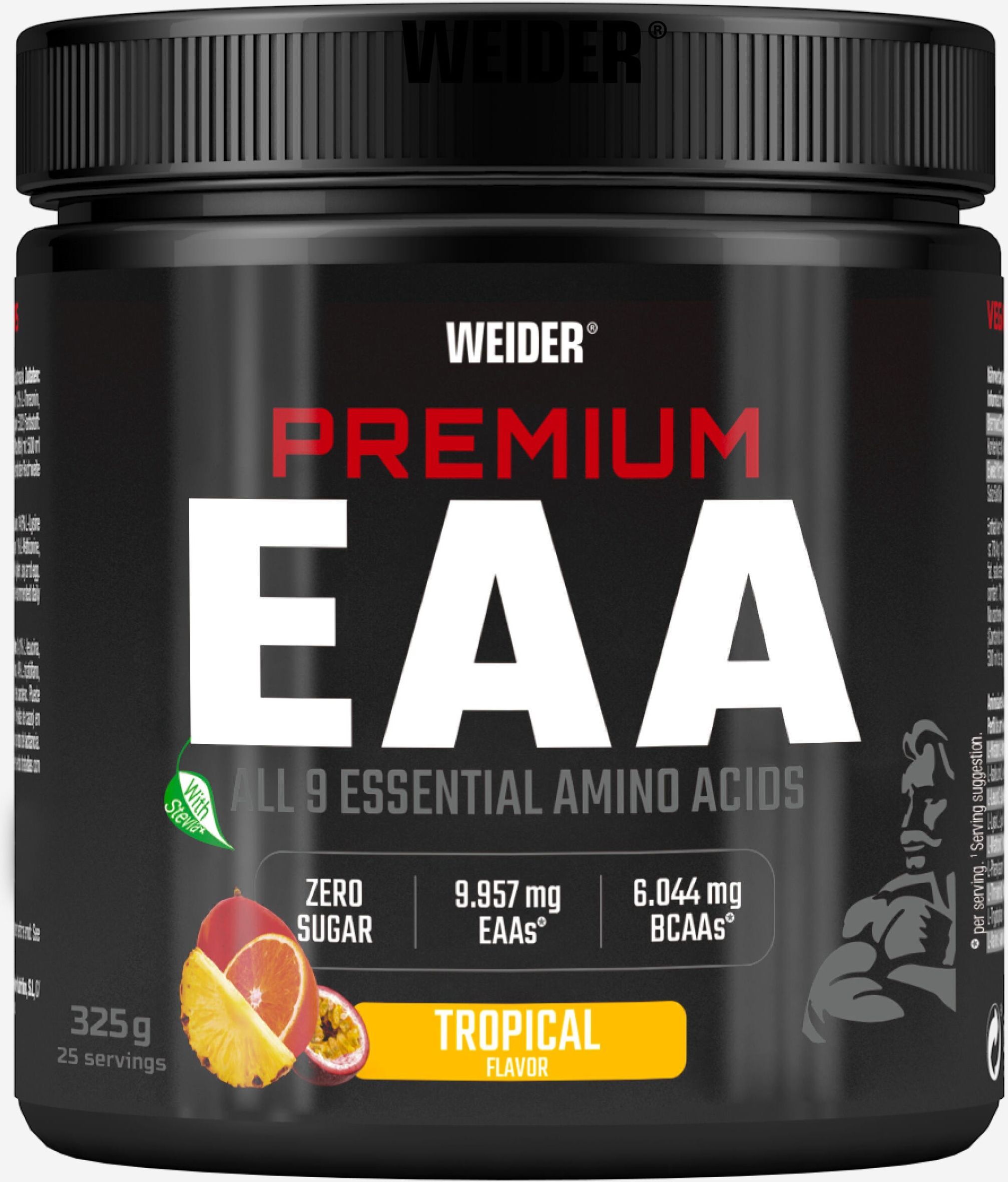 <h2><strong>Zestaw 9 aminokwasów EAA Tropical Premium 375 g</strong></h2> <p><b>Marka:</b>Weider</p> <h3>Opis produktu</h3> <p>Premium EAA dostarcza Ci wszystkich niezbędnych aminokwasów, w tym aminokwasów rozgałęzionych (BCAA), w …