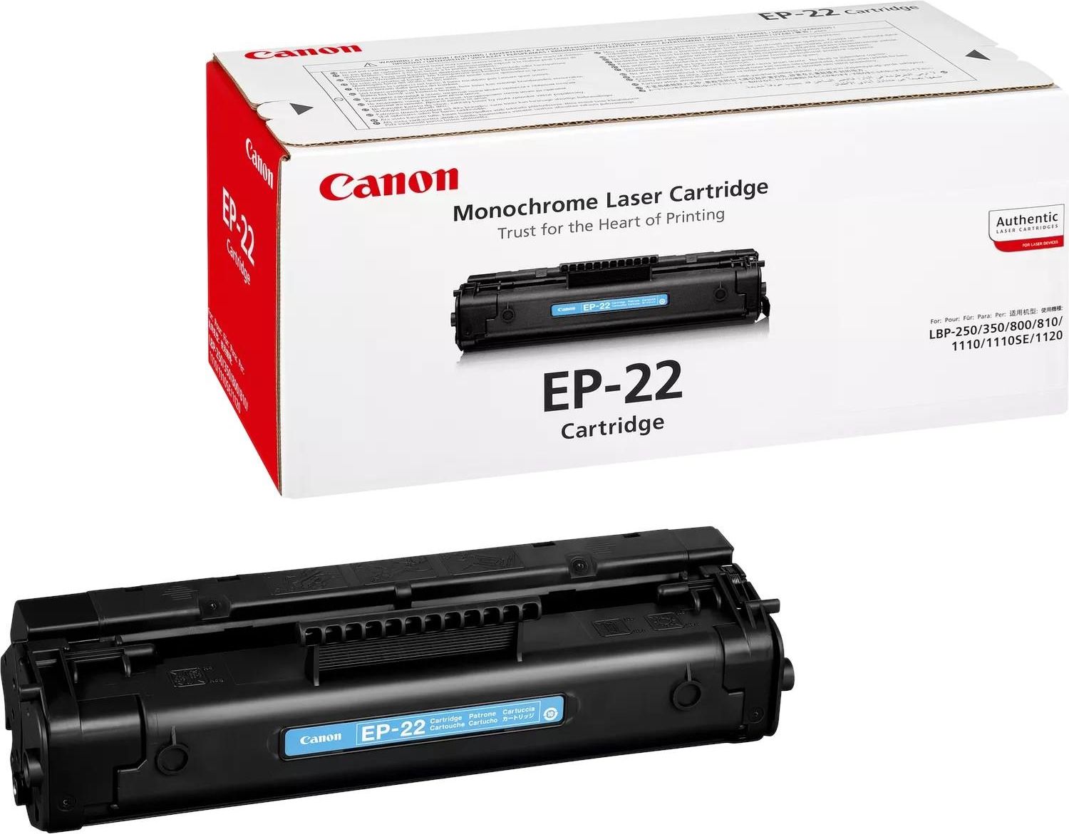 CANON  Kaseta z czarnym tonerem EP-22 Wydajność kasety EP-22 wynosi około 2500 stron A4 przy 5-procentowym pokryciu . Korzyści Ten produkt jest zgodny z dyrektywą RoHS (2011/65/UE) i jej poprawkami, w tym (2015/863/UE) oraz innymi przepisami RoHS w krajach/regionach innych niż UE, co oznacza, że użyte materiały są mniej niebezpieczne dla środowiska naturalnego Zużyte kasety na toner można zwrócić do ponownego wykorzystania lub recyklingu. Usługa jest bezpłatna, prosta i ekologiczna Zgodność LBP810 LBP800 Laser Shot LBP1120