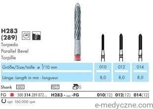 Finiry - wysokiej jakości węgliki spiekane o długiej żywotności, odporne na zużycie. Typ H283-010 - 014 na turbinę. Nr artykułu: H283-014-FG ISO Nr. 500 314 289 072 014 Zastosowanie: Opracowywanie wypełnień, Implantologia.