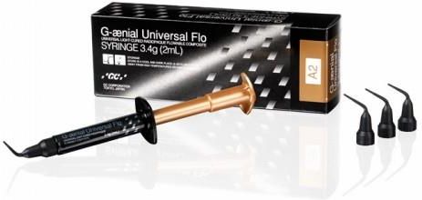 Uniwersalny, światłoutwardzalny kompozyt płynny o wysokiej lepkości. Doskonała odporność na ścieranie, przewyższająca nawet odporność kompozytów konwencjonalnych, optymalna płynność umożliwiająca łatwą aplikację połączona z tiksotropią zapewniającą utrzymanie kształtu. Parametry fizyczne i doskonała estetyka bez żadnych kompromisów czyni GC G-ænial Universal Flo idealnym materiałem do bezpośrednich odbudów ubytków klasy I, II, III, IV i V, do szynowania i odbudów minimalnie inwazyjnych. W uwagach do zamówienia proszę zaznaczyć kolor strzykawki: G - aenial Universal 3,4g (2 ml);A1A2A3A3,5AEAO2AO3B1B2C3IL