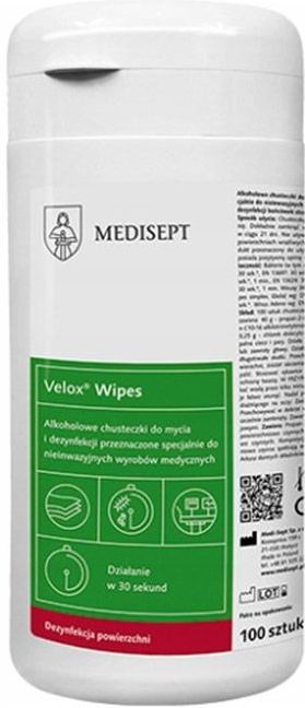 Medisept Velox Wipes puszka Chusteczki do dezynfekcji różnorodnych powierzchni sprzętu medycznego z tworzyw sztucznych Garwolin