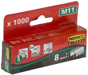 Zszywki MN-46-148 MODECO Rozmiar: 8 mm Pasuje do: zszywacza : R34, ESN114 Ilość sztuk/ opak.: 1000 sztuk Kod PKWiU: 25.93.14.0 Kod EAN: 5906757272798