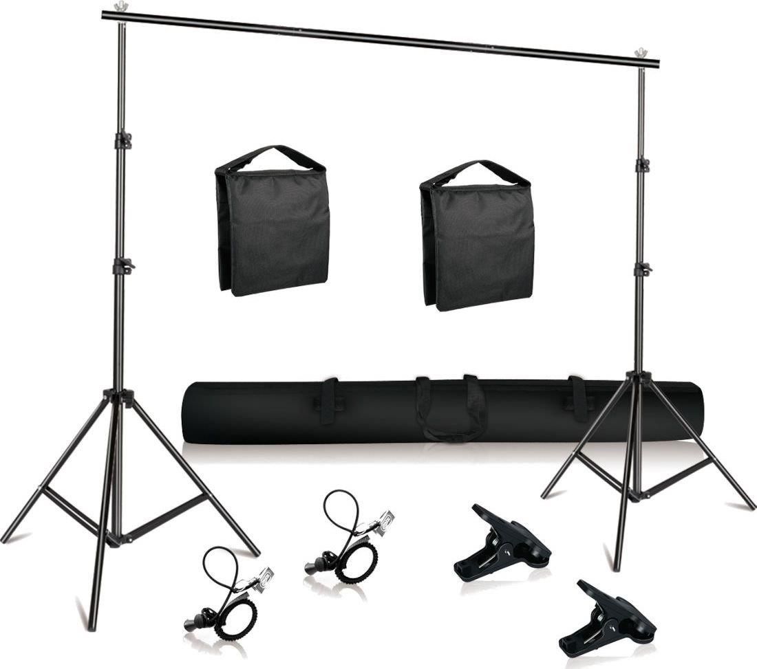 MOZOS SDOTEL2 ZESTAW STATYW DO TŁA FOTOGRAFICZNEGO DO 200x200cm Zestaw do wieszania tła Bogaty zestaw montażowy do teł fotograficznych W zestawie wszystko co potrzebujesz do komfortowej pracy - 2 statyw, poprzeczka, 2 klipsy, 2 zapięcia gumowe, 2 obciążniki dla lepszej stabilizacji statywów, Wysoka …