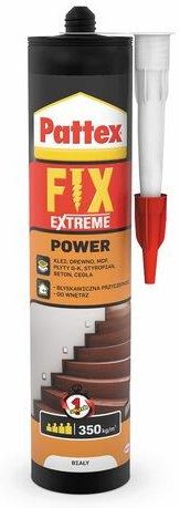 Klej montażowy FIX Power - 400 g, marki Pattex.Jest to znakomitej jakości, uniwersalny klej przeznaczony do stosowania wewnątrz pomieszczeń. Charakteryzuje go wysoka przyczepność początkowa, dzięki czemu można za jego pomocą kleić również ciężkie przedmioty.Klej tworzy elastyczną i wodoodporną spoinę, dzięki czemu trwale przykleja: listwy drewniane, ścienne i cokołowe, tabliczki na drzwi, ościeżnice, panele ścienne itp.Dodatkową zaletą kleju jest to, że nie zawiera rozpuszczalników i jest bezzapachowy.