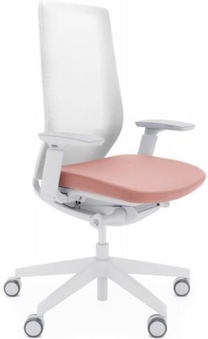 Profim AccisPro - krzesło jasnoszare AccisPro jasnoszare marki Profim to ten sam model, który występuje w wersji podstawowej - z czarnym stelażem jako szerzej opisywane tutaj Krzesło AccisPro.Krzesło w wersji jasnoszarej posiada - w odróżnieniu od czarnej - następujące elementy w jasnym odcieniu: rama oparcia, spód siedziska i mechanizm wraz z dźwigniami do regulacji, podłokietniki, siłownik (podnośnik siedziska), podstawa jezdna (za dopłatą może być też biała) oraz kółka. Wersje kolorystyczne oparcia i siedziska do wyboru są takie same, jak w opcji z czarną konstrukcją. AccisPro to ergonomiczne krzesło biurowe zapewniające dynamiczne siedzenie. Posiada balansujące siedzisko oraz elastyczne oparcie. Ruchy boczne siedziska są delikatne, pozwalają siedzieć dynamicznie, ale nie sprawiają odczucia zachwiania równowagi, jak w krzesłach biurowych z siedzeniem na spręzynie. W modelu AccisPro zastosowano specjalny zawias kulowy po środku oraz - co niezwykle ważne - dwie sprężyny po bokach, które stabilizują ruch siedziska i pozwalają na szybki, automatyczny powrót do pozycji poziomej. Ten specjalistyczny ruch można też szybko zablokować jednym ruchem. Dynamiczne siedzenie na krześle AccisPro pozwala zachować większą ruchomość kręgosłupa i zmniejsza zmęczenie odczuwane zwykle podczas długiego siedzenia przy biurku. Specjalna konstrukcja tego krzesła redukuje też obciążenie pleców w czasie wykonywanie ruchów bocznych, czy schylania się podczas siedzenia. Fotel AccisPro - z uwagi na jego wymiary i możliwości regulacji - będzie wskazany dla osób o wzroście około 150 - 185 cm. Opcję z zagłówkiem natomiast polecamy od ok. 165 cm. Zobacz funkcje i możliwości, jakie daje krzesło AccisPro. Sprawdź protokół oceny ergonomicznej krzesła AccisPro. Tapicerki siedziska i siatki oparcia jasnoszarego Krzesła AccisPro Oparcie krzesła AccisPro może być tapicerowane dwoma różnymi siatkami - w kilku kolorach do wyboru. Wzornik kolorów Do wyboru wiele tapicerek i opcji kolorystycznych, w kilku kategoriach cenowych. Sprawdź tutaj specyfikację materiałów tapicerskich. Fotel Accis Pro ma 5 lat gwarancji! Fotel częściowo zmontowany, do dalszego samodzielnego i bardzo łatwego montażu. Zobacz więcej w kategorii Krzesła i fotele ergonomiczne