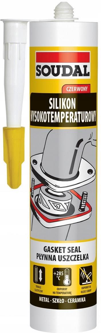 Silikon wysokotemperaturowy firmy Soudal pełni funkcję elastycznej płynnej uszczelki i doskonale zastępuje wszelkie tradycyjne uszczelnienia wykonane z korka, filcu, włókna, papieru, azbestu oraz gumy o dowolnej szerokości i grubości. Odznacza się bardzo wysoką wytrzymałością nawet przy temperaturze 285 °C. Jest powszechnie stosowany w budownictwie i przemyśle podczas uszczelniania różnego rodzaju elementów, które narażone są na działanie wysokich temperatur (np. uszczelnienia motoryzacyjne, uszczelnienia w urządzeniach grzewczych, kuchennych, w przewodach wentylacyjnych i spalinowych). Silikon wysokotemperaturowy Soudal perfekcyjnie klei i uszczelnia m.in. powierzchnie metalowe, szklane i ceramiczne. Właściwości silikonu wysokotemperaturowego Niewrażliwy na wysokie temperatury (do 285°C) Odporny na działanie paliw, olejów i smarów, tłuszczy, płynów mrozoodpornych i wielu innych chemikaliów Doskonała przyczepność do metali, szkła i ceramiki Nie wymaga primerów ani aktywatorów Po utwardzeniu - trwale elastyczny i odporny na wszelkie wpływy atmosferyczne. Zastosowanie silikonu wysokotemperaturowego Odporne na temperaturę fugi elastyczne w budownictwie i przemyśle Elastyczne uszczelnienia hermetyzujące w kotłach grzewczych, piecach CO, maszynach i sprzęcie kuchennym Uszczelnienia w pompach, silnikach, skrzyniach przekładniowych, systemach klimatyzacyjnych itp. Kolor czerwony