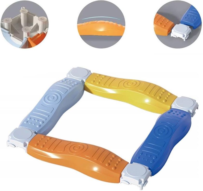 Kod produktu: 14079 Wprowadź aktywność i rozwój do świata Twojego dziecka z Balansującym Kołem Sensorycznym od marki Woopie! Ta modułowa ścieżka w kształcie koła to fantastyczny sposób na poprawę równowagi, koordynacji ruchowej i integracji sensorycznej. Elementy o zróżnicowanej, sensorycznej strukturze i kształcie "fali" doskonale stymulują stopy, jednocześnie wspierając rozwój mięśni i prawidłową postawę. Żywe kolory zachęcają do zabawy, a możliwość tworzenia różnych konfiguracji (koło, wąż, kształty) sprawia, że zabawa nigdy się nie nudzi. Idealne do ćwiczeń w domu, na dworze, na każdej płaskiej powierzchni! Charakterystyka - Dla dzieci od 3 lat - Składa się z 8 elementów, które można dowolnie łączyć w koło, falę lub inne kształty - Wypustki i wgłębienia na powierzchni stymulują receptory czuciowe stóp, wspierając integrację sensoryczną - Antypoślizgowe podkładki zapewniają bezpieczeństwo i stabilność na różnych powierzchniach - Kształt "fali" na elementach zwiększa wyzwanie dla równowagi - Intensywne kolory - Wytrzymały materiał PP - Idealne do zabawy w domu, ogrodzie, na trawie czy innej płaskiej powierzchni Zestaw zawiera - 8 modułowych elementów toru balansowego w kształcie łuków - Podkładki anty poślizgowe Zabawka rozwija - Równowagę statyczną i dynamiczną - Koordynację ruchową - Zmysł dotyku i propriocepcję - Dużą motorykę - Wyobraźnię przestrzenną - Kreatywność (poprzez tworzenie własnych konfiguracji) Wymiary produktu (pojedynczy element) - Długość: ok. 48 cm - Szerokość: ok. 13.3 cm - Wysokość: ok. 7,5 cm Wymiary złożonej ścieżki, okręgu: 130cm średnicy Producent - WoopieWiek - od 3 latPłeć - chłopiec/dziewczynkaMateriał - tworzywo sztucznekolory - wielokolorowyWymiary opakowania - 49,5 x 29 x 27,5 (cm) - - - NatiKids – Zabawki dla dzieci od renomowanych producentów W sklepie internetowym NatiKids znajdziesz szeroki wybór zabawek dla dzieci od renomowanych producentów, które gwarantują najwyższą jakość, bezpieczeństwo i niezapomnianą zabawę. Oferujemy produkty dopasowane do różnych grup wiekowych, wspierające rozwój i kreatywność maluchów. Zabawki najwyższej jakości – Bezpieczna zabawa dla Twojego dziecka Zabawki dostępne w NatiKids pochodzą od sprawdzonych i uznanych marek, które stawiają na bezpieczeństwo i trwałość swoich produktów. Wszystkie zabawki są wykonane z materiałów spełniających surowe normy jakości, co daje pewność, że Twoje dziecko bawi się bezpiecznie. Szeroka oferta zabawek – Edukacja i rozwój przez zabawę W NatiKids oferujemy różnorodny asortyment zabawek – od kreatywnych klocków, przez zabawki edukacyjne, aż po interaktywne gry i układanki. Nasze zabawki wspierają rozwój motoryczny, umysłowy oraz wyobraźnię dziecka, zapewniając jednocześnie mnóstwo radości. NatiKids – Zabawki, które inspirują Odkryj zabawki dla dzieci renomowanych producentów w NatiKids i zapewnij swojemu dziecku nie tylko rozrywkę, ale i narzędzia do nauki i rozwoju. Zaufaj jakości i wybierz zabawki, które pokochają zarówno dzieci, jak i rodzice!