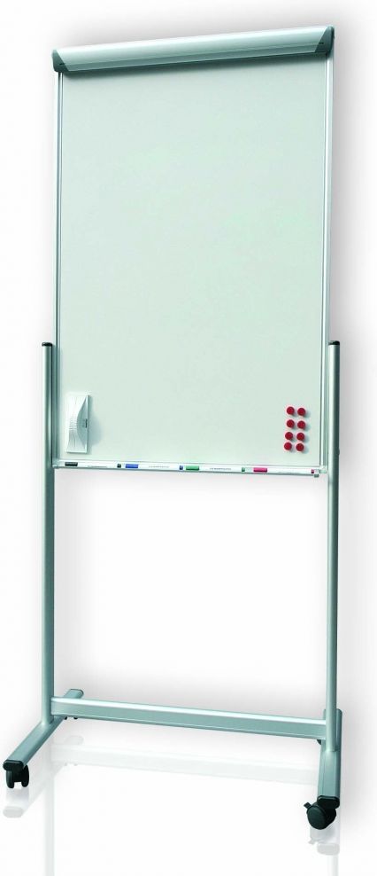 Mimo swojego niepozornego wyglądu jest to urządzenie chętnie używane na konferencjach, szkoleniach i wszelakich prezentacjach. Jest to idealne rozwiązanie w przypadku potrzeby zapisywania atrakcyjniejszych pomysłów podczas dyskusji, lub wizualizacji swoich pomysłów w gronie współpracowników. - Profesjonalny dwustronny flipchart suchościeralny o nowoczesnym wzornictwie, z powierzchnią magnetyczną lakierowaną. - Konstrukcja popielata z eleganckimi szarymi wykończeniami. - Aluminiowa rama zapewnia stabilizację oraz podnosi estetykę produktu. - Podstawa wyposażona w kółka z systemem blokowania, zapewniająca stabilność produktu i ułatwiająca jego przemieszczanie. - Wysokość flipcharta wynosi 195 cm. - Flipchart posiada również specjalny uchwyt z mechanizmem sprężynowym do zawieszenia bloku. - W komplecie: półki na markery (2 szt.) - Powierzchnia: lakierowana - Waga: 10,5 kg - Wymiary tablicy: 70 x 104 cm - Wysokość całkowita: 195 cm - Rodzaj stojaka: mobilny - Szerokość podstawy jezdnej: 60 cm - Półki na markery: 2 szt. , o długości 30 cm każda Gwarancja: 2 lata na produkt, 10 lat na powierzchnię lakierowaną oraz dożywotnia na ceramiczną