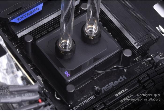 Chłodzenie procesora Alphacool Eisblock XPX Aurora ProChłodzenie procesora Alphacool Eisblock XPX Aurora Pro jest wykonane z wysokiej jakości mosiądzu, który zapewnia doskonałą przewodność cieplną i trwałość.Innowacyjne cyfrowe oświetlenie RGBChłodnica jest wyposażona w innowacyjne cyfrowe oświetlenie RGB, które umożliwia dostosowanie kolorów i efektów w celu uzyskania imponującego wyglądu.Wyjątkowa wydajność chłodzeniaDzięki zoptymalizowanej konstrukcji i wysokiej jakości materiałom, Eisblock XPX Aurora Pro oferuje wyjątkową wydajność chłodzenia, zapewniając niskie temperatury nawet w wymagających zastosowaniach.Wydajne rozpraszanie ciepłaChłodnica jest wyposażona w specjalną strukturę mikrokanałów, która zapewnia efektywne rozpraszanie ciepła, a tym samym optymalizuje wydajność procesora.Trwały i niezawodnyDzięki zastosowaniu wysokiej jakości materiałów i precyzyjnemu wykonaniu, cooler CPU Alphacool Eisblock XPX Aurora Pro jest wyjątkowo trwały i niezawodny, zapewniając długotrwałe użytkowanie. Alphacool Eisblock XPX Pro Aurora. Typ: Zestaw chłodzenia cieczą. Szerokość: 63,5 mm, głębokość: 76,5 mm, wysokość: 31 mm. Kolor produktu: CzarnyWydajnośćŚrodowisko użytkowaniaProcesorTypZestaw chłodzenia ciecząObsługiwane gniazda procesorówLGA 1200 (Socket H5), LGA 1700, LGA 2011-v3 (Socket R), LGA 2066, LGA 3647 (Socket P), LGA 4189, Socket AM4, Socket AM5, Socket SP3, Socket TR4, Socket TRX40, Socket sWRXIlość w opakowaniu1 sztKonstrukcjaKolor produktuCzarnyMateriałyMosiądzPodświetlenie LEDTakLiczba diod LED2Złącze wentylatora3-pinoweFCZarządzanie energiąNapięcie LED5 VWymiary i wagaSzerokość63,5 mmGłębokość76,5 mm GłębokośćWysokość31 mmWaga707 gSzerokość opakowania215 mmGłębokość opakowania130 mmWysokość opakowania40 mm Wysokość opakowaniaWaga opakowania1,4 kgZawartość opakowaniaZestaw montażowyTakLiczba nakrętek4Liczba dołączonych podkładek4 Wraz z Alphacool Eisblock XPX Aurora Pro, Alphacool oferuje chłodzenie wodne CPU, które zostało specjalnie zaprojektowane dla procesorów ze szczególnie dużymi rdzeniami. Obejmuje to obecnie modele AMD Threadripper i procesory firmy Intel dla gniazda LGA 2066 i gniazda serwerowego LGA 3647 w konstrukcji Narrow ILM. Jako cooler CPU z linii Aurora Design, cooler CPU naturalnie oferuje zintegrowane cyfrowe oświetlenie aRGB. Niezwykle wydajny Podstawa coolera została specjalnie zoptymalizowana pod kątem dużych rdzeni procesora. Łącznie 147 żeber chłodzących biegnie na powierzchni około 42 x 58,6 mm. Dla porównania, Alphacool Eisblock XPX Aurora wymaga tylko 81 żeberek chłodzących, aby całkowicie pokryć rdzeń zwykłego procesora. Oba coolery wykorzystują ten sam typ żeberek o grubości zaledwie 0,2 mm. To wyraźnie pokazuje, jak daleko posunął się Alphacool, aby zaoferować najlepszą możliwą wydajność. Cała podstawa coolera jest oczywiście wykonana z niklowanej miedzi, a nie aluminium. Wynika to z faktu, że przewodność cieplna miedzi jest prawie dwukrotnie wyższa niż aluminium. Podświetlenie Za logo Alpahcool zainstalowano dwie cyfrowo adresowalne 5V diody LED RGB, które tworzą unikalne, bardzo elegancko wyglądające podświetlenie. Cyfrowe oświetlenie LED aRGB jest podłączone za pomocą 3-pinowego złącza JST. Aby sterować cyfrowym oświetleniem RGB, dołączony adapter musi być podłączony do 3-pinowego złącza żeńskiego i podłączony do cyfrowego kontrolera RGB lub płyty głównej z obsługą cyfrowego RGB. Dodatkowe cyfrowe diody LED RGB można podłączyć do pozostałego 3-stykowego złącza męskiego. Dyskretny wygląd Matowe wykończenie nadaje coolerowi, który jest wykonany w całości z mosiądzu (z wyjątkiem podstawy coolera), elegancki wygląd. Sprawia to, że jest on interesujący dla użytkowników, którzy szukają dyskretnego wyglądu i nie chcą rozbudowanego oświetlenia aRGB. Smar termiczny W zestawie znajduje się smar termiczny Alphacool Subzero o przewodności cieplnej 16 W/mk. Nieprzewodzący elektrycznie smar termiczny jest szczególnie odpowiedni do wysokich ciśnień kontaktowych, ale nadal może być doskonale przetwarzany ze względu na jego lepkość 850000 TF. Kompatybilność: Kompatybilność Intel: 1200 / 1700 / 2011-3 / 2066 / LGA 3647 / LGA 4189 Kompatybilność AMD: TR4 / TRX40 / sWRX8 / SP3 / AM4 / AM5