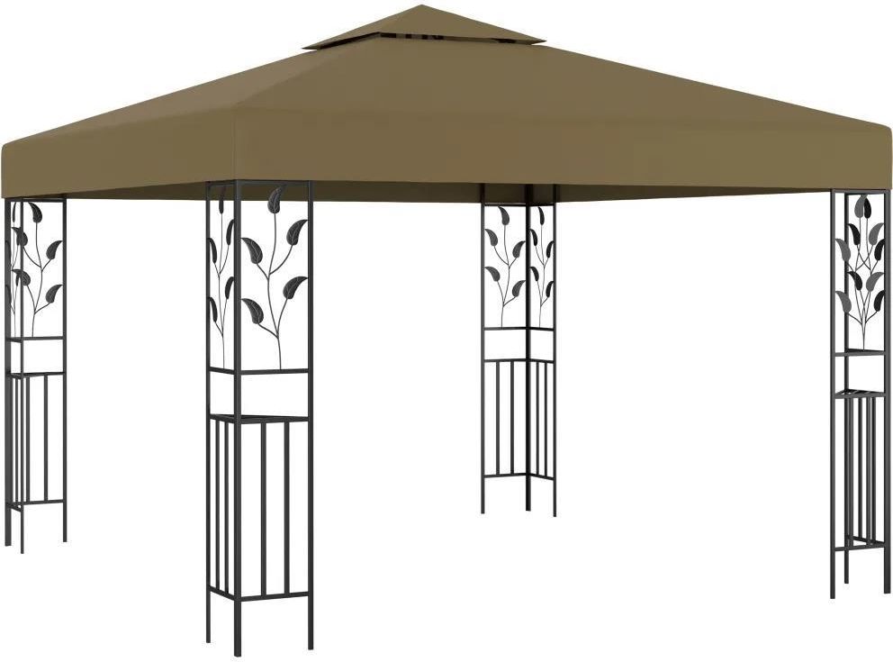 ALTANA OGRODOWA NAMIOT PAWILON PERGOLA OGRODOWA NA TARAS OGRÓD 3 x 3 m Skorzystaj z zacisznego azylu i ochrony prywatności, jaki zapewnia ta altanka, aby Twoje wnętrze na świeżym powietrzu nabrało jeszcze większego uroku! Altanka została wykonana z solidnej stali, pokrytej trwałą powłoką proszkową przeciwko rdzy, dzięki czemu z pewnością posłuży Ci przez wiele lat. Rozwiewające się zadaszenie nie tylko chroni przed słońcem i deszczem, lecz także zapewnia niezakłóconą zabawę podczas spotkań rodzinnych, grillowania, popołudniowych pikników czy imprez urodzinowych. Materiał zastosowany do zadaszenia cechuje się wysoką jakością, a jego powłoka PA efektywnie blokuje większość szkodliwych promieni. Dodatkowo narożniki zadaszenia zostały wzmocnione, a mocowania na rzep ułatwiają szybkie przymocowanie pokrycia do konstrukcji altany. Uwaga: ze względów bezpieczeństwa, nie zaleca się korzystania z tego produktu podczas niepogody, takiej jak silne wiatry, obfite opady deszczu czy śniegu, burze, itp. Kolor: taupe (szarobrązowy) Materiał: stal o powłoce proszkowej Materiał pokrycia: tkanina wykonana z 100% poliestru z powłoką PA Wymiary: 3 x 3 x 2,5 m (dł. x szer. x wys.) Gramatura tkaniny: 180 g/m² Produkt jest odporny na promieniowanie UV Podwójne zadaszenie gwarantuje dobrą cyrkulację powietrza Rama ozdobiona motywem kwiatowym Montaż wymagany: tak