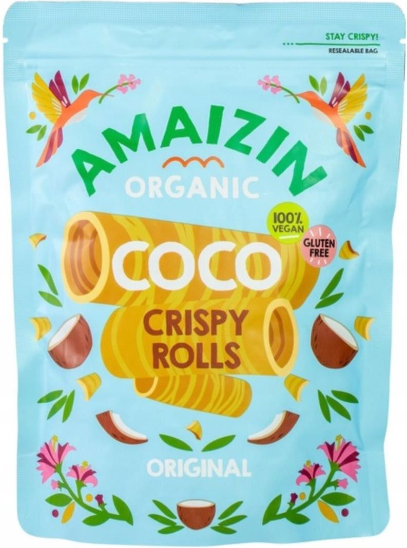 Amaizin Napoje Kokosowe Tortilla Chip Rollsy Chrupiące Rurki Kokosowe Bezglutenowe Bio 140g Gdańsk