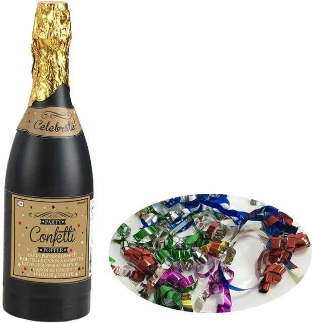Tuba strzelająca konfetti "Szampan - serpentny", mix, AMSCAN, 33 cm Strzelająca tuba konfetti w kształcie butelki szampana to świetny gadżet na wyjątkową okazję! W tym przypadku idealnie sprawdzi się na takie uroczystości jak Nowy Rok czy urodziny. Wystarczy tylko przekręcić tubę u podstawy aby …