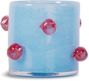Świecznik Arlo to zabawna wersja naszego ukochanego Calore. Podobnie jak jego kuzyni, Arlo ma wiele funkcji. Może być używany jako wazon, świecznik lub miska. Pasuje do wszystkiego i wszędzie, szczególnie w połączeniu ze świecznikami Lori i Lara, gdzie kolory się uzupełniają. Kolor to błękitny z bordowymi kulkami, które są również ikoniczne dla Byon. Ręcznie robiony, mogą wystąpić różnice w kolorze i strukturze. Projekt Byon Studio. Dostarczany w pudełku Byon. Materiał: Szkło dmuchane Waga: 600 g Wymiary: szerokość: 10 cm długość: 10 cm wysokość: 10 cm Kolor: błękitny/bordowy Technika: Ręcznie wykonane, mogą wystąpić różnice w kolorze i strukturze.