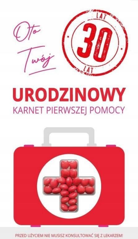 Karnet z okazji 30 urodzin z życzeniami, kopertą i humorystycznym dodatkiem w środku. Autor: . Oprawa: folia Format: 223x139 mm