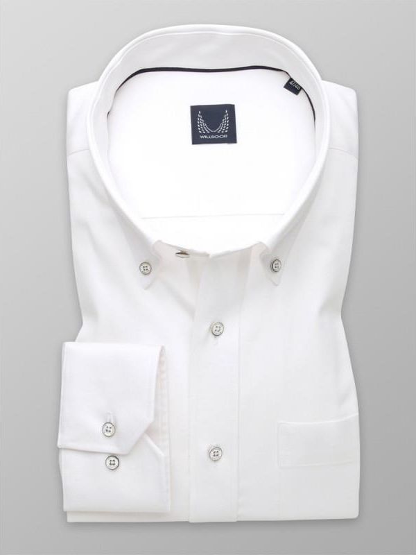 Biała klasyczna koszula o gładkiej fakturze z podpinanym kołnierzykiem, tkanina z dodatkiem elastanu