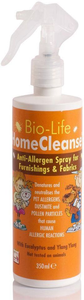 Środek czyszczący przeznaczony do usuwania roztoczy, alergenów zwierzęcych i cząstek pyłków z pościeli, mebli tapicerowanych, dywanów i legowisk dla zwierząt. JAK TO DZIAŁA Skuteczne środki czyszczące wraz z naturalnymi antyalergenami, eukaliptusem i ylang ylang, otulają i neutralizują pyłki i alergeny zwierzęce oraz natychmiastowo usuwają większość alergenów roztoczy i ich pozostałości. HomeCleanse™ jest niezbędny dla osób cierpiących na reakcje alergiczne na roztocza i odgrywa ważną rolę w zmniejszaniu obecności alergenów zwierząt domowych, pyłków lub pleśni w domu. Jest to bezplamowy spray, który można zastosować na każdym miękkim meblu, którego nie można prać, np. materace, kołdry, dywany i sofy. Oparty na ujemnie naładowanych środkach powierzchniowo czynnych i starannie dobranych olejkach eterycznych HomeCleanse™ jest bezpieczny i skuteczny oraz pomaga zapobiegać wszelkim formom reakcji alergicznych – podrażnieniom oczu, nosa, gardła, klatki piersiowej i skóry. SPOSÓB UŻYCIA Trzymaj pojemnik pionowo. Wstrząśnij przed użyciem. Spryskaj materace, poduszki (nie poszewki), dywany, materiałowe elementy wyposażenia, zasłony i legowisko zwierzaka, używając około 4 psiknięć na metr kwadratowy Pozostaw spryskane powierzchnie do wyschnięcia na ok. 2-3h Stosuj raz w miesiącu Jeżeli w okresie pylenia występuje alergia na pyłki, dawkę należy zwiększyć do raz w tygodniu. Zalecamy wietrzenie wyłącznie przy pomocy specjalnej siatki przeciwpyłowej. WAŻNE Przy alergii na roztocze i zwierzęta - stosować raz w miesiącu. W okresie pylenia – stosować raz w tygodniu. Zaleca się zamykanie okien i drzwi. Butelka wystarczy na około 3 miesiące używania INCI: Aqua, PPG-26 Buteth PEG-40Hydrogenated castor oil (Phytokeratin), Eucalyptus globulus leaf oil (CAS No. 8000-48-4), Benzyl benzonate (CAS No. 121-51-4), Quaternium-26, Quternium-22, Cananga odorata Asortyment Bio-Life International obejmuje produkty antyalergiczne, repelenty owadów, produkty do pielęgnacji skóry i sierści oraz produkty do pielęgnacji skóry dla wrażliwych psów. Wszystkie wykonane z naturalnych składników, wolne od toksyn i przyjazne dla wegan produkty Bio-Life są zatwierdzone przez Allergy UK i wszystkie przeszły próby i testy potwierdzające ich skuteczność. Nasze słynne produkty AirCleanse® , HomeCleanse® , PetalCleanse® (kot i pies), Fabricleanse®, EcoCitrocin® i Medicleanse Uwagi i środki ostrożności Preparat należy stosować zgodnie z jego przeznaczeniem, przestrzegając wskazówek i zaleceń zawartych w instrukcji. Produkt wyłącznie do użytku zewnętrznego. Nie stosować bezpośrednio na skórę. Bezwzględnie unikać kontaktu z oczami, błonami śluzowymi ust i nosa. W przypadku kontaktu ze skórą, oczami, błonami śluzowymi nosa i ust należy przemyć je obficie czystą, letnią wodą. Nie stosować w przypadku nadwrażliwości na, którykolwiek składnik. Nie stosować po upływie terminu ważności. Przechowywać w temperaturze 5 - 40 °C Przechowywać w sposób niedostępny dla małych dzieci.