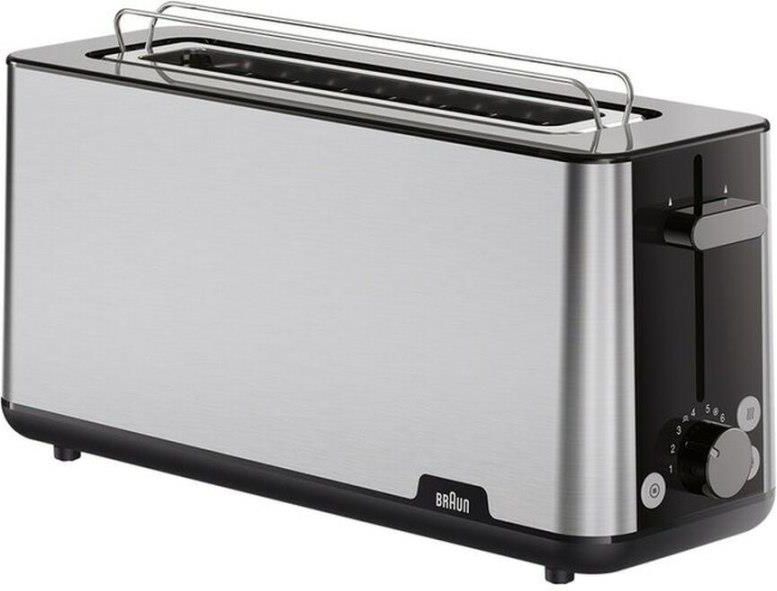 Otwór o długości 25 cm – bardzo długi otwór nadaje się do wszystkich rodzajów chleba o długości do 25 cm. Automatyczny system centrowania sprawia, że chleb jest zawsze optymalnie ustawiony dla równomiernego przyrumienienia 8 stopni opiekania – wybierz jeden z 8 różnych poziomów opiekania, aby uzyskać idealny stopień przypieczenia każdego rodzaju chleba. Zmienne ustawienie opiekania dopasowuje się do każdego rodzaju chleba Funkcja ręcznego podnoszenia – system chlebowy umożliwia łatwe wyjmowanie nawet najmniejszych kromek chleba z tostera bez ryzyka poparzenia Elektroniczne sterowanie – toster jest wyposażony w podświetlane przyciski ułatwiające obsługę i elektroniczne sterowanie do precyzyjnego podgrzewania i rozmrażania bułek i chleba Zestaw do pieczenia bułek – zintegrowany podgrzewacz do bułek zapewnia wygodne podgrzewanie bułek i innych wypieków, idealny na ciepłe śniadanie