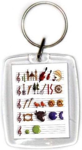 Breloczek – kaszubskie nuty Akrylowy breloczek z motywem „Kaszubskich nut” – jednej z najbardziej rozpoznawalnych pieśni kaszubskiego folkloru. To oryginalny dodatek inspirowany regionalną tradycją, który świetnie sprawdzi się jako ozdoba kluczy, plecaka lub torebki. Wzór widoczny jest po obu stronach breloczka, dzięki czemu prezentuje się estetycznie z każdej strony. Lekki i trwały, będzie doskonałym drobnym upominkiem lub pamiątką z Pomorza dla miłośników kultury kaszubskiej. Wymiary: 4 × 5,5 cm Materiał: akryl Nadruk: dwustronny Wyprodukowano na Pomorzu O kaszubskich nutach Kaszubskie nuty to tradycyjna pieśń kaszubska mająca formę wyliczanki. Do jej wykonania wykorzystuje się specjalną planszę z rysunkami – podczas śpiewu jedna osoba wskazuje odpowiednie symbole na pięciolinii. Pieśń wykonywana jest w charakterystyczny sposób: po zaśpiewaniu kolejnych fragmentów wraca się w odwrotnej kolejności do początku, co nadaje jej wyjątkowy rytm i edukacyjny charakter.