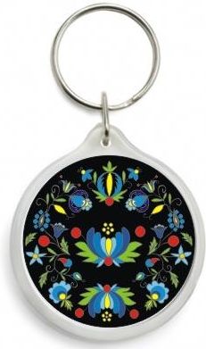Brelok okrągły haft kaszubski Wzór inspirowany elementami haftu kaszubskiego. Idealny dodatek do kluczy. Średnica 4 cm. Wyprodukowane na Pomorzu. Jednym z bardziej rozpoznawalnych symboli związanych z Kaszubami jest z pewnością haft kaszubski – mocno rozpowszechniona dziedzina sztuki ludowej tego regionu. W ostatniej dekadzie ponownie uczymy się doceniać wartość rękodzieła, zwłaszcza regionalnego i często unikalnego. Cieszący się wciąż rosnącą popularnością haft ludowy, zasługuje na szczególną uwagę w tej kwestii. Przeszłość to jedno, ale z pewnością haftu kaszubskiego nie powinno się zamykać w dzisiejszych czasach zaledwie w ramach historii i etnografii. Różne odmiany haftu kaszubskiego znajdują obecnie zastosowanie w nowoczesnym wzornictwie tworząc nową gałąź zwaną popularnie etnodesignem.