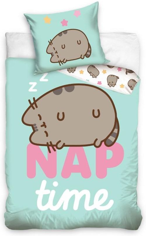 Uroczy komplet pościeli z motywem Pusheena, składający się z poszwy na kołdrę i poszewki na poduszkę. Miękki, przyjemny w dotyku materiał zapewnia komfortowy sen i doda sypialni słodkiego, pastelowego charakteru. Pościel w rozmiarze 160x200 cm + 70x80 cm Materiał: 100% Polyester Wzór dwustronny