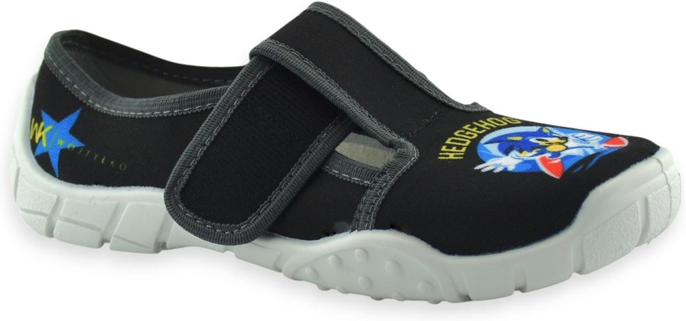 Kapcie chłopięce ze skórzaną wkładką to idealne obuwie na zmianę do przedszkola, zerówki i szkoły. Oddychająca podeszwa, naturalna skóra i rzep gwarantują wygodę, a nadruk z niebieskim jeżem zachęca dzieci do noszenia ich także w domu.