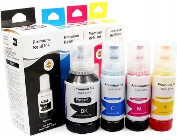Zestaw 4 x tuszy do Epson 103 XL W zestawie: Tusz Cyjan - 70 ml 5000 stron Tusz Magenta - 70 ml 5000 stron Tusz Żółty - 70 ml 5000 stron Tusz Czarny - 127 ml 8000 stron Kod producenta: 103 Pasuje do maszyn : Epson L1110, Epson L1110 CIS, Epson L1110 MEAF, Epson L3100 CIS, Epson L3100 MEAF, Epson L3101 CIS, Epson L3110, Epson L3110 CIS, Epson L3110 MEAF, Epson L3111, Epson EcoTank L1210, Epson EcoTank L1250, Epson EcoTank L3110, Epson EcoTank L3111, Epson EcoTank L3116, Epson EcoTank L3150, Epson EcoTank L3151, Epson EcoTank L3156, Epson EcoTank L3160, Epson EcoTank L3210, Epson EcoTank L3211, Epson EcoTank L3250, Epson EcoTank L3251, Epson EcoTank L3256, Epson EcoTank L3260, Epson EcoTank L3266, Epson EcoTank L5190, Epson EcoTank L5290, Epson EcoTank L5296