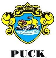 Naklejka pucka Naklejka z herbem Pucka - miasta leżącego w północnej części Kaszub (Nordzie).Na herbie Miasta Puck przedstawiona jest postać lwa trzymającego łososia, płynącego po morskich falach. Początkowo na herbie Pucka znajdowała się sama ryba: śledź, węgorz, może łosoś. Obecny herb pojawił się już w XVI wieku Wielkość: 6 x 7,5 cm Wyprodukowano na Pomorzu.