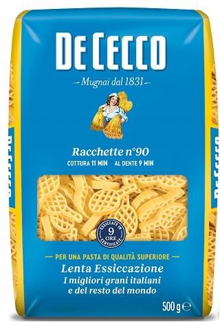 De Cecco Racchette 90 - makaron 500g De Cecco Racchette n°90: to włoski, pszenny makaron o wyjątkowym kształcie. Doskonałe po prostu z sosem pomidorowym, Racchette są szczególnie smaczne również w przepisach z sosem mięsnym, grzybowym lub z sosami na bazie warzyw. Gotowanie: 11 min Al dente: 9 min …