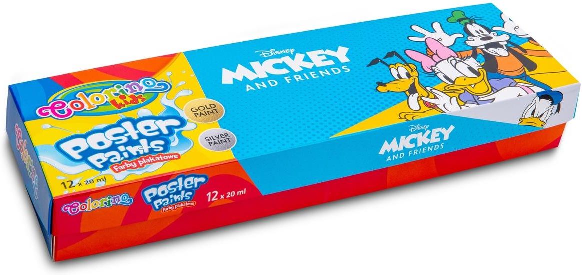 Farby plakatowe mix 20 ml Colorino Kids 12 kolorów Mickey ❤️ PATIO ❤️ ✔️ Doskonale kryjące wodorozcieńczalne farby w 12 niezwykłych kolorach. W zestawie znajdują się 3 farby metaliczne, 4 brokatowe, 2 neonowe, 2 świecące w ciemności oraz farba w kolorze cielistym. Dzięki aksamitnej konsystencji …