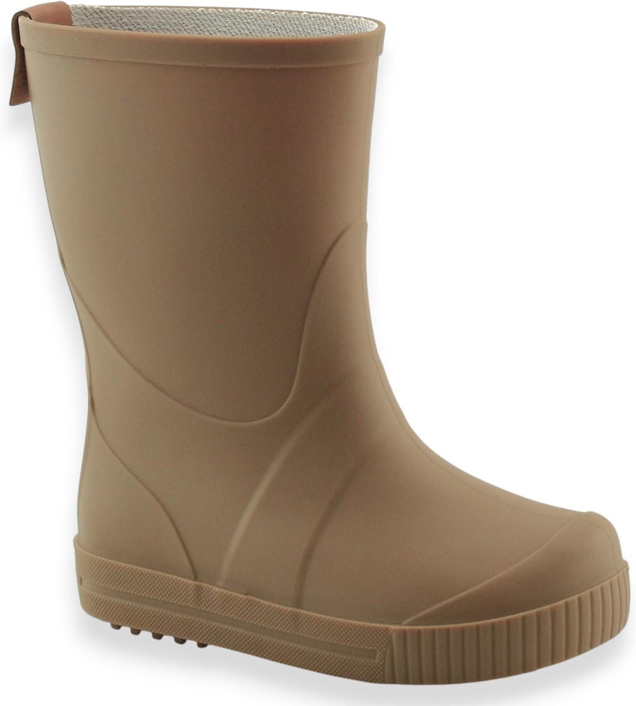 Stylowe kalosze w ponadczasowym odcieniu camel pasują zarówno dla chłopców, jak i dziewczynek. Na pięcie odblask zwiększający bezpieczeństwo po zmroku. Dzięki solidnej konstrukcji i komfortowemu kształtowi buty idealnie nadają się na deszczowe dni.