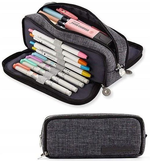 Ecarla Duży Piórnik Wielofunkcyjny Saszetka Trzykomorowy Grafit Pr04Cz Gdańsk