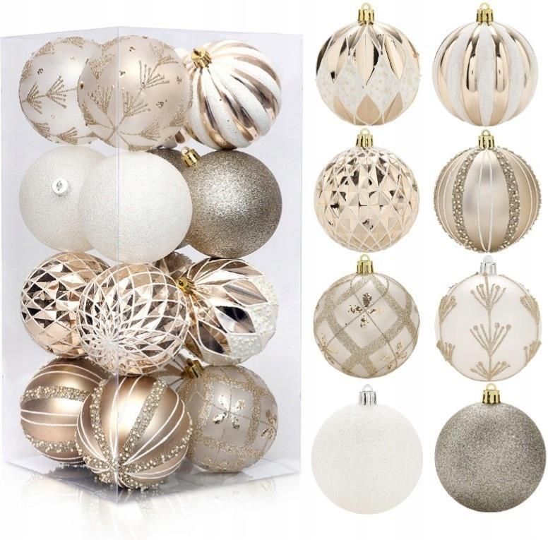 ZESTAW 16 SZT OZDOBNYCH BOMBEK ZAWIESZEK ZŁOTY ZESTAW Nietłukące się bombki świąteczne – piękne ozdoby na Twojej choince! Wprowadź do swojego domu magiczną atmosferę świąt dzięki wyjątkowym bombkom. Te urocze dekoracje w stylu pięknych złotych bombek sprawiają, że choinka staje się jeszcze bardziej przytulna i rodzinna. Każda bombka została starannie wykonana i ozdobiona, zachwyci zarówno dzieci, jak i osoby dorosłe. Doskonale sprawdzą się nie tylko na choince, ale także jako dekoracja okna, wieńca, prezentu czy stroika. _____________ To drobny akcent, który dodaje wnętrzu ciepła, radości i wyjątkowego klimatu Bożego Narodzenia! DANE TECHNICZNE Zestaw nietłukących się bombek Cena obejmuje zakup kompletu 16 sztuk Materiał: Tworzywo sztuczne Kolor : Szampański złoty Wymiary: 8 cm średnicy Zestaw pakowany w pudełko ochronne UNIWERSALNY DESIGN Cudowny i praktyczny dodatek do twojego wnętrza. Tymi ozdobami udekorujesz świątecznie każdy dom. Bombki idealnie pasują zarówno na zwykłą choinkę jak i formę ozdoby nie jednego kominka czy pokoju dziecięcego. Pięknie ozdobią wnętrze Twojego domu. Te piękne świąteczne ozdoby sprawdzą się w świątecznej dekoracji domu na wiele sposobów: do dekoracji choinki do wystroju okien do stroików Bożonarodzeniowych do wystroju pokoju dziecięcego do ozdoby kominków, drzwi forma prezentu dla bliskiej osoby Poczuj klimat świąt! Udekoruj swój dom w magiczny sposób dzięki naszej niepowtarzalnej kolekcji bombek! Bombki nie tylko muszą kojarzyć się z choinką. Idealnie sprawdzą się jako ozdoba prezentu, dekoracja stołu , stroików czy elementów Bożonarodzeniowych !