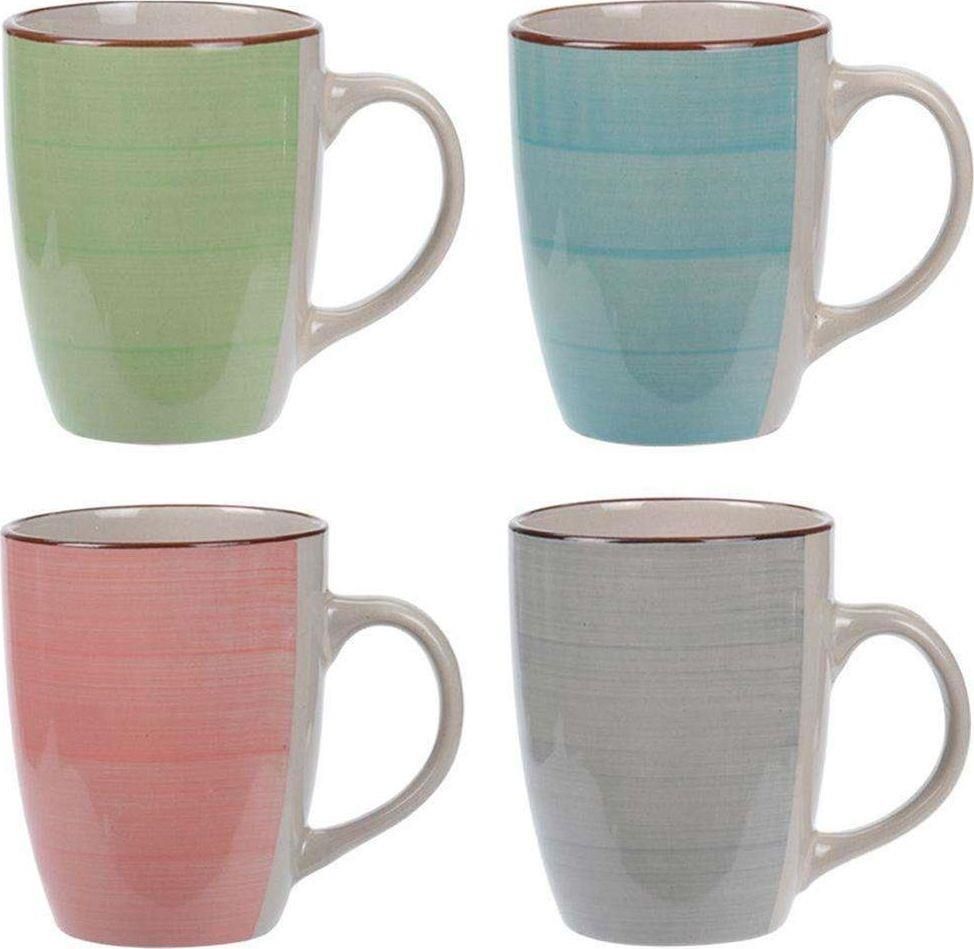 Kubki z uchem do picia kawy herbaty ceramiczne zes Excellent Houseware PRZYDATNE - Zestaw czterech dekorowanych kubków z uchem do picia napojów, świetnie sprawdzą się w codziennym użytku. Kubki są o pojemności 270 ml i wymiarach: średnica 7,5 cm a wysokość 10 cm. Idealne do picia herbaty, kawy, …