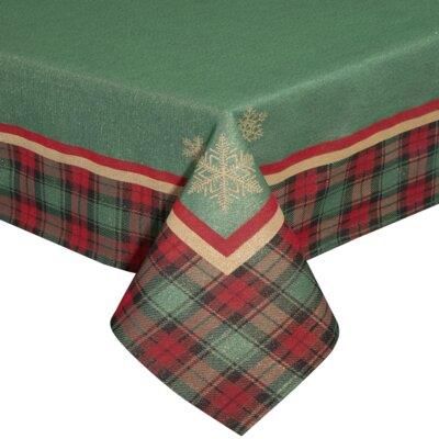 Świąteczny obrus gobelinowy z kolekcji STAR wykonany z grubej tkaniny zdobionej motywem kraty i złotych śnieżynek, to efektowna dekoracja dodająca stylu wnętrzu.