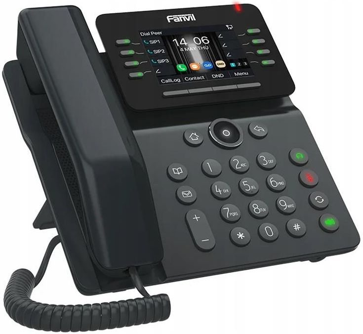 Fanvil V63 telefon VoIP Czarny 6 linii LCD Wi-Fi Fanvil V63. Typ produktu: IP Phone, Kolor produktu: Czarny, Typ słuchawki: Zestaw słuchawkowy przewodowy. Ilość linii: 6 linii, Pojemność książki telefonicznej: 1000 wejścia. Typ ekranu: LCD, Długość przekątnej ekranu: 7,11 cm (2.8"), Rozdzielczość: 320 x 240 px. Częstotliwość mikrofonu: 0 - 70 Hz, Kodeki glosu: AGC, G.711a, G.711u, G.722, G.723.1, G.726, G.729, G.729A, G.729B, G.729ab, PLC, VAD, iLBC. Typ interfejsu Ethernet LAN: Gigabit Ethernet, Prędkość transferu danych przez Ethernet LAN: 10,100,1000 Mbit/s, Standardy Wi- Fi: 802.11a, 802.11b, 802.11g, Wi-Fi 4 (802.11n), Wi-Fi 5 (802.11ac) Najważniejsze parametry techniczne Montaż - Typ montażu: Biurko / Ściana Obsługa połączeń - Zawieszanie połączeń: Tak Mikrofon - Częstotliwość mikrofonu: 0 - 70 Hz Mikrofon - Wyciszenie mikrofonu: Tak Wyświetlacz - Długość przekątnej ekranu: 7,11 cm (2.8") Wyświetlacz - Rozdzielczość: 320 x 240 px Sieć - Prędkość transferu danych przez Ethernet LAN: 10,100,1000 Mbit/s Sieć - Typ interfejsu Ethernet LAN: Gigabit Ethernet Sieć - Przewodowa sieć LAN: Tak Sieć - Wi-Fi: Tak Sieć - Bluetooth: Tak Sieć - Wersja Bluetooth: 4.2 Porty i interfejsy - liczba portów RJ-9: 2 Porty i interfejsy - Gniazdko wyjścia DC: Tak Konstrukcja - Typ słuchawki: Zestaw słuchawkowy przewodowy Konstrukcja - Kolor produktu: Czarny Konstrukcja - Typ ekranu: LCD Konstrukcja - Blokada urządzenia: Tak Konstrukcja - Typ produktu: IP Phone Wydajność - Głośnik: Tak Funkcje telefonu - Ilość linii: 6 linii Funkcje telefonu - Automatyczna sekretarka: Tak Funkcje telefonu - Pozycje rejestru połączeń: 1000 Funkcje telefonu - Zsynchronizowane rejestry połączeń: Tak Funkcje telefonu - Możliwośc rozmowy konferencyjnej: Tak Funkcje telefonu - Pojemność książki telefonicznej: 1000 wejścia Funkcje telefonu - Nazwa i identyfikacja dzwoniącego: Tak Funkcje telefonu - Możłiwość przekazywania połączenia: Tak Funkcje telefonu - Ponowne wybieranie numeru: Tak Funkcje telefonu - Połączenie oczekujące: Tak Funkcje telefonu - Domofon: Tak Funkcje telefonu - Odbieranie połączeń: Tak Funkcje telefonu - Połączenia oczekujące: Tak Funkcje telefonu - Numer ukryty: Tak Funkcje telefonu - Odrzucenie połączeń z numerów ukrytych: Tak Funkcje telefonu - Przekazywanie połączeń: Tak Funkcje telefonu - SIP registrar server: Tak Porty We/Wy na tylnym panelu - Liczba portów USB 2.0: 1 Porty We/Wy na tylnym panelu - Ilość portów Ethernet LAN (RJ-45): 2 Cechy - Standardy Wi- Fi: 802.11a, 802.11b, 802.11g, Wi-Fi 4 (802.11n), Wi-Fi 5 (802.11ac) Cechy - Funkcja: Tak Cechy - Pełny dupleks: Tak Cechy - Montaż naścienny / rzutowanie na sufit: Tak Dane opakowania - Szerokość opakowania: 258 mm Dane opakowania - Głębokość opakowania: 71 mm Dane opakowania - Wysokość opakowania: 307 mm Faks - Prędkość wybierania numeru: Tak Cechy zarządzania - Obsługa jakość serwisu (QoS): Tak Ochrona - Szyfrowanie / bezpieczeństwo: EAP, WPA, WPA2-PSK Protokoły - Klient DHCP: Tak Protokoły - Obsługiwane protokoły sieciowe: SIP2.0 over UDP/TCP/TLS, RTP/RTCP/SRTP, STUN, DHCP, CDP, LLDP, PPPoE, 802.1x, OpenVPN, SNTP, FTP/TFTP Moc - Zużycie prądu (przesył prądu przez Ethernet (PoE)): 6,3 W Audio - Kodeki glosu: AGC, G.711a, G.711u, G.722, G.723.1, G.726, G.729, G.729A, G.729B, G.729ab, PLC, VAD, iLBC Moc - Obsługa PoE: Tak Moc - Pobór mocy: 4,36 W Moc - Napięcie wyjściowe adaptera AC: 5 V Moc - Prąd wyjściowy adaptera AC: 2 A Waga i rozmiary - Szerokość produktu: 203,8 mm Waga i rozmiary - Głębokość produktu: 170,8 mm Waga i rozmiary - Wysokość produktu: 166,7 mm Warunki pracy - Zakres temperatur (eksploatacja): 0 - 45 °C Warunki pracy - Zakres wilgotności względnej: 10 - 95% Klasyfikacja - Kod producenta: V63 Klasyfikacja - EAN: 6937295604313 Klasyfikacja - ID Produktu: 116396120