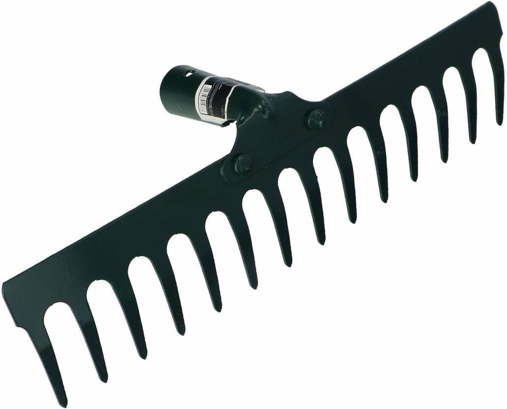 Wykonane z gatunkowej stali utwardzonej Spawane i malowane zęby Zaostrzone krawędzie Solidna konstrukcja Wersja nieoprawiona (bez trzonka) Kolor: zielony