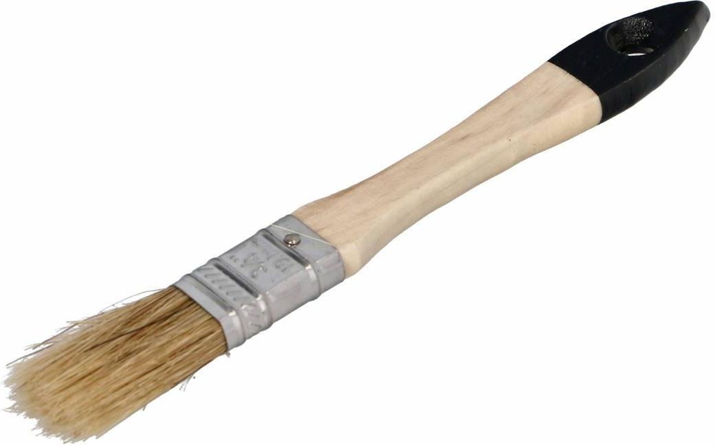 Pędzel płaski typu angielskiego przeznaczony do podstawowych prac malarskich Włosie naturalne Rączka wykonana jest z drewna bukowego, które jest bardzo wytrzymałe Dostępny w wielu rozmiarach