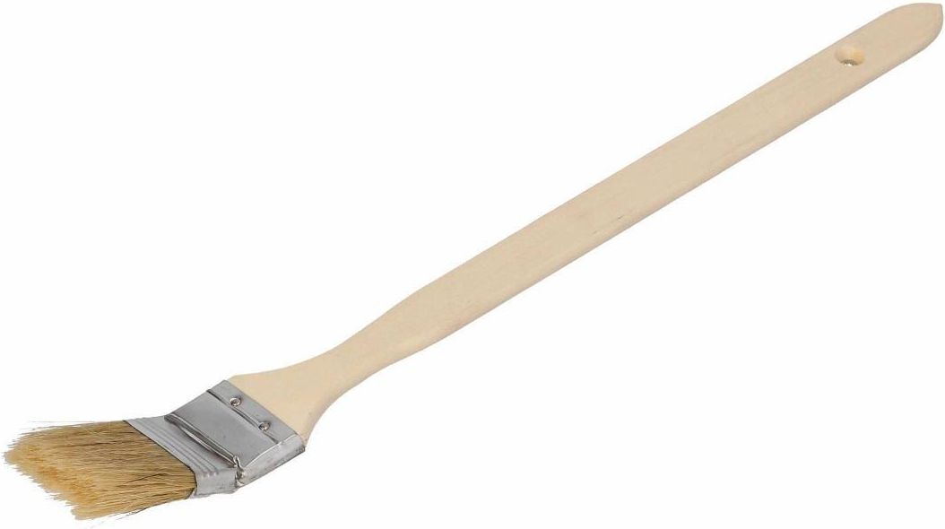 Pędzel kaloryferowy o specjalnej formie, która umożliwia malowanie kaloryferów Dzięki odpowiednio długiej, kątowej rączce możliwy jest dostęp do trudnych miejsc podczas malowania Włosie naturalne, rączka wykonana z wytrzymałego drewna Przeznaczony do malowania farbami emulsyjnymi akrylowymi, farbami podkładowymi, emaliami i gruntami