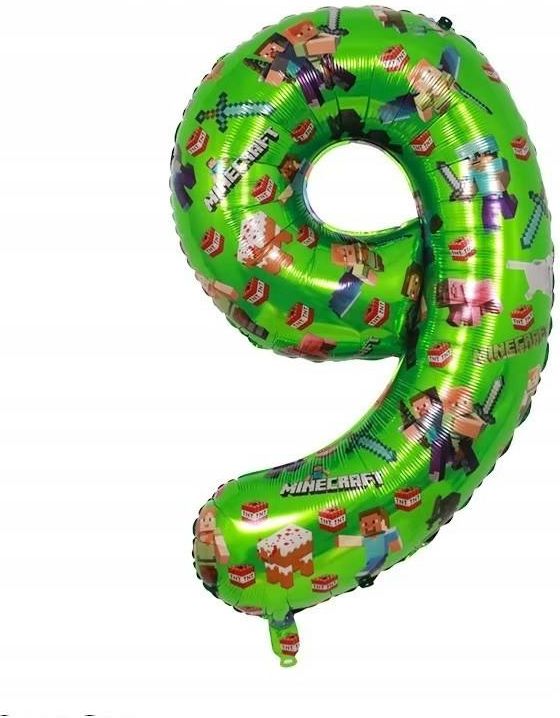 Grajlandia Balon 9 Urodziny Cyfra Dziewięć Foliowy Zielony 100cm Minecraft Gdańsk