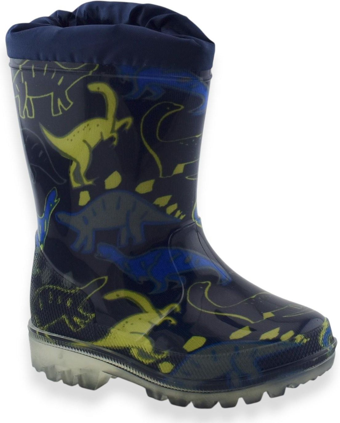 Granatowe kalosze chłopięce z motywem dinozaurów to świetny wybór na wiosnę i lato. Wyposażone w praktyczny ściągacz przy cholewce, który chroni przed przedostawaniem się wody i błota do środka. Idealne na deszczowe dni, leśne spacery i zabawy na dworze.