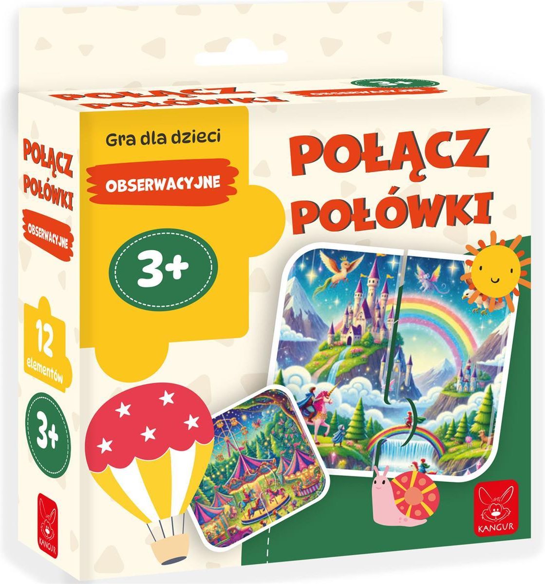 Połącz połówki Obserwacyjne 3+ Kangur ✅ ✔️ Dzieci bawią się w układanie pięknie ilustrowanych połówek puzzli obserwacyjnych. Gra wspomaga u dzieci koncentrację, rozwój ruchu dłoni oraz wspomaga myślenie przestrzenne. ➡️ Kategoria wiekowa: 3+ Wydawnictwo/Producent: Kangur Rok wydania: …