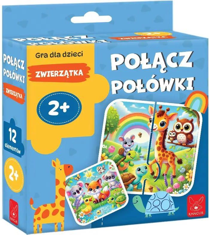 Gra Połącz Połówki Zwierzątka Kangur ✅ ✔️ Dzieci bawią się w układanie połówek puzzli ciekawych zwierzątek. Gra wspomaga u dzieci koncentrację, rozwój ruchu dłoni oraz wspomaga myślenie przestrzenne. Wiek:+3 Zawartość:12 elementów, 6 układanek ➡️ ISBN: 5905723441961 Data premiery: 2025-03-26 …