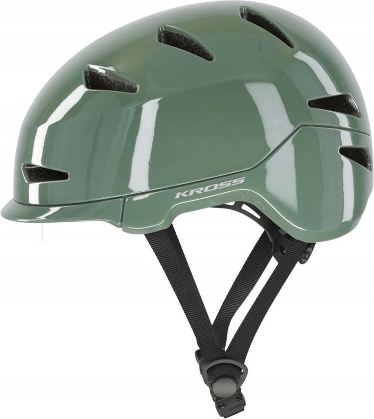 Kask rowerowy KROSS Capitalo rozmiar L Zielony KASK ROWEROWY CAPITALO Kask Capitalo to nowoczesne rozwiązanie stworzone z myślą o miejskich rowerzystach, którzy cenią sobie zarówno bezpieczeństwo, jak i styl. Jego charakterystyczny, kompaktowy kształt typu „orzech” doskonale wpisuje się w estetykę miejskiej mobilności, zapewniając elegancki wygląd i niezawodną ochronę podczas codziennych dojazdów. Dzięki zastosowaniu technologii Inmold kask ten jest wyjątkowo lekki, a jednocześnie wytrzymały, co gwarantuje skuteczną ochronę w ruchu miejskim. Odpowiednią wentylację zapewnia 12 otworów wentylacyjnych. Kask Capitalo to idealny wybór dla tych, którzy przemierzają zatłoczone ulice miasta na rowerze, hulajnodze czy deskorolce, i chcą czuć się pewnie oraz wyglądać stylowo. Specyfikacja · Marka KROSS · Model CAPITALO · Typ kasku INMOLD · Rodzaj zamknięcia KLAMRA · Rodzaj regulacji POKRĘTŁO · Zastosowanie CITY · Otwory wentylacyjne 8 · Waga 388 g · Antybakteryjne wkładki Nie · Kolor bazowy ZIELONY · Rozmiary M (54-58 cm), L (58-61 cm)