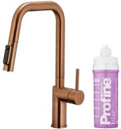 Bateria kuchenna z filtracją wody oraz wyciąganą wylewką DUERO PURE STYLE BRUSHED ROSE GOLD Dlaczego warto filtrować wodę? Linia baterii kuchennych Duero Pure z funkcją filtrowania wody to esencja zdrowia, wygody oraz troski o środowisko w jednym. Dzięki filtrowi węglowemu możesz cieszyć się smaczną i czystą wodą prosto z kranu, eliminując konieczność sięgania po wodę butelkowaną. To nie tylko komfortowe rozwiązanie, lecz także ekologiczne, bo picie wody z kranu to realne kilogramy oszczędzonego plastiku z butelek Komfortowe filtrowanie Baterie kuchenne Duero Pure kryją wewnątrz dwa oddzielne kanały: dla wody filtrowanej i niefiltrowanej, co gwarantuje, że nie mieszają się one ze sobą. Zamontowany pod zlewem filtr oczyszcza przepływającą przez niego wodę, dostarczając ją wprost „do szklanki”. W baterii Duero Pure Style funkcja filtrowania wody uruchamiana jest przyciskiem z przodu wylewki. Doskonała funkcjonalność Bateria kuchenna Duero Pure Style to nie tylko doskonałe filtrowanie wody, ale także kompleksowe rozwiązanie, które znacząco ułatwia codzienne czynności kuchenne. Dzięki obrotowej, wyciąganej wylewce oraz możliwości zmiany typu strumienia wody zapewnia wyjątkowy komfort użytkowania zarówno podczas gotowania, jak i mycia naczyń. Dostępność w trzech nowoczesnych kolorach umożliwia łatwe dopasowanie baterii do stylistyki Twojej kuchni. Teraz wybór idealnej baterii staje się prostszy niż kiedykolwiek wcześniej. Filtry dopasowane do potrzeb Baterie Duero Pure są wyposażone w wysokiej jakości filtry włoskiej firmy Profine, które redukują zawartość chloru, związków organicznych oraz eliminują nieprzyjemne zapachy i smaki z wody. Co ważne, spełniają normy dyrektywy UE 98/83/WE. Dostępne w trzech wariantach, pozwalają na idealne dopasowanie do indywidualnych potrzeb każdego domu. Profine Lilac - filtr dedykowany do kuchni prywatnych oraz gastronomii. Pozwala na poprawę smaku kawy, redukuje twardość węglanową (wapień), usuwa zapachy i smaki oraz ma działanie bakteriostatyczne. Dostępny w 2 rozmiarach i wydajnościach. Intuicyjny montaż DUERO PURE Montaż baterii Duero Pure jest niezwykle intuicyjny dzięki dopracowanemu w szczegółach projektowi. Bezproblemowo zamontujesz baterię wraz z filtrem, a późniejsza wymiana filtra będzie równie łatwa i bezstresowa. Co więcej, w zestawie znajdziesz praktyczny licznik informujący o zbliżającym się terminie wymiany filtra. Wszystko w zestawie W zestawie startowym znajdują się przyłącza elastyczne (dł. 600 mm), ciężarek, komplet mocujący z podkładką, zestaw startowy z filtrem PROFINE (filtr, głowica, zawór 3/8”×3/8”×1/4", wężyk przyłączeniowy 1/4" (dł. 2000 mm), licznik przepływu wody z monitorem, złączki i uszczelki, spinki zabezpieczające, pasek do pomiaru twardości wody, taśma teflonowa, 2×bateria AA). Dane techniczne Kolor: miedź szczotkowana PVD Napowietrzacz: tak Przepływ wody [l/min]: woda zmieszana 6 / woda filtrowana 2,4 Rodzaj filtra: PROFINE lilac small Żywotność filtra: 470 L dla 15° dKH Ciśnienie robocze [atm]: 3 Temperatura wody [°C] maks.: ≤90/65 Wylewka: wyciągana Długość wylewki [mm]: 240 Ilość strumieni: 2 Grupa akustyczna: II